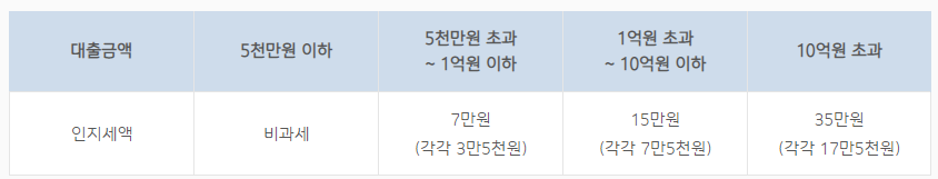 추가적으로 인지세액은 아래의 표를 참고해주세요.